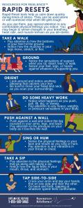 Resources for Resilience teaches a set of science-based, body-focused practices called Rapid Resets. These actions help the body recognize safety through repetition and small, intentional pauses. Over time, these moments signal to the brain that the immediate threat has passed.